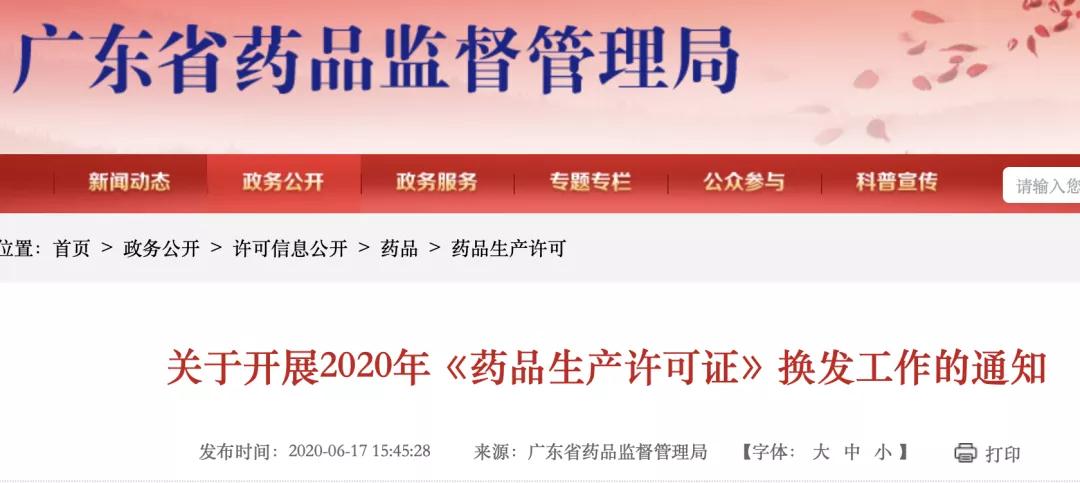 广东省药品监督管理局办公室关于开展2020年《药品生产许可证》换发工作的通知
