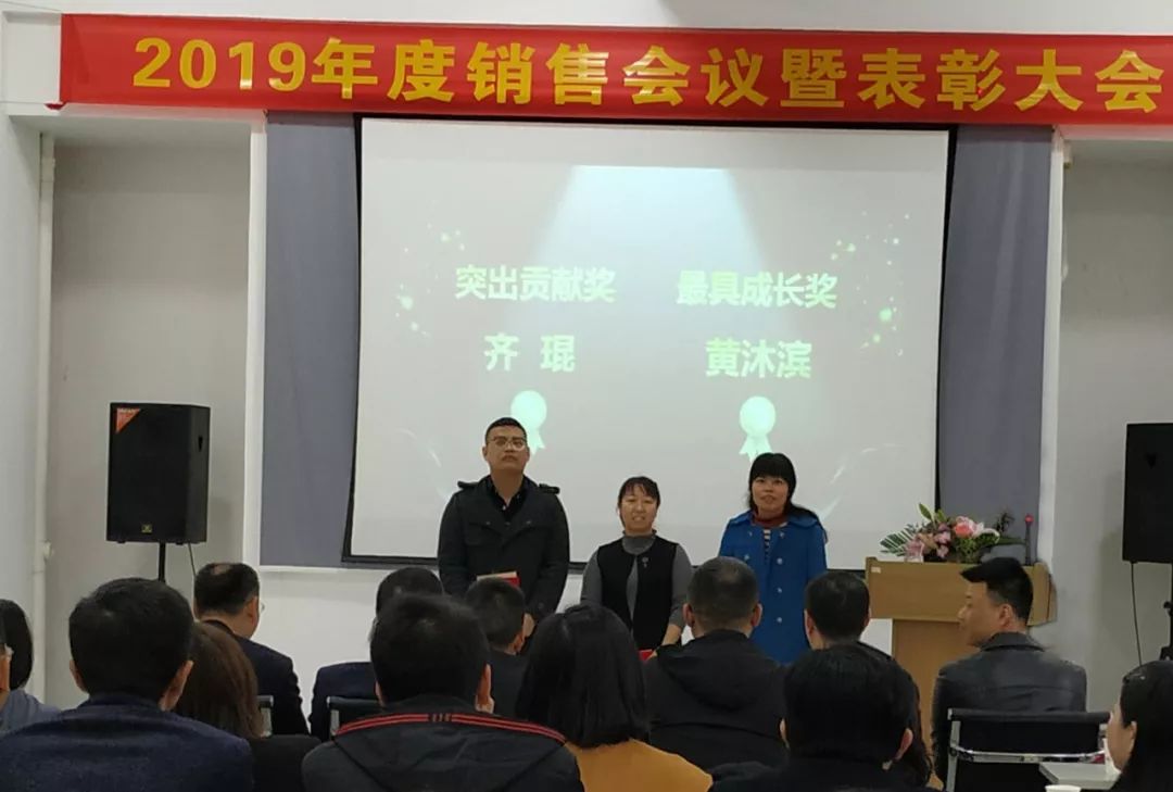 为此,公司为他们颁发了优秀业务员奖、突出贡献奖、最具成长奖、销售状元奖、销售管理奖。
