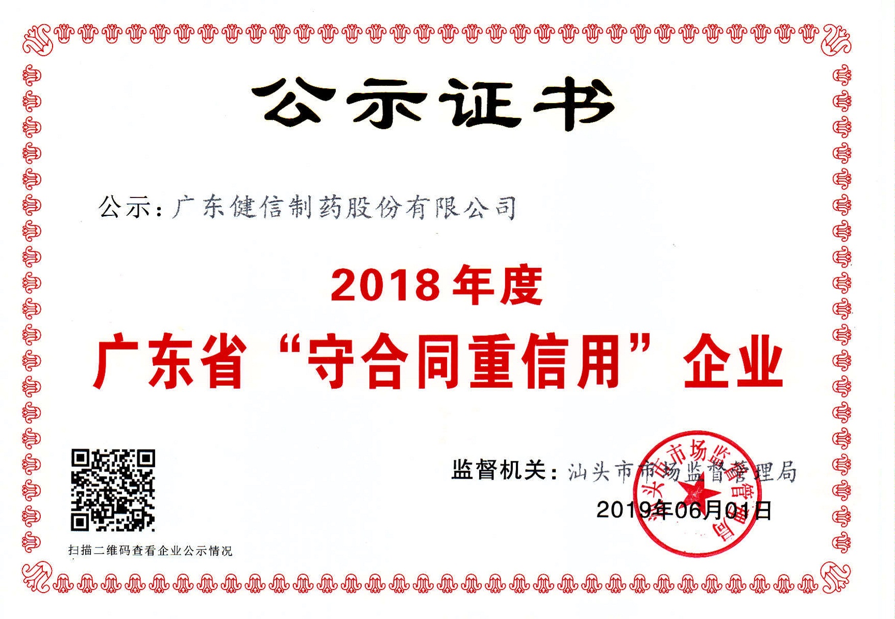爱体育在线(中国)唯一官方网站被评为2018年度广东省守合同重信用企业。